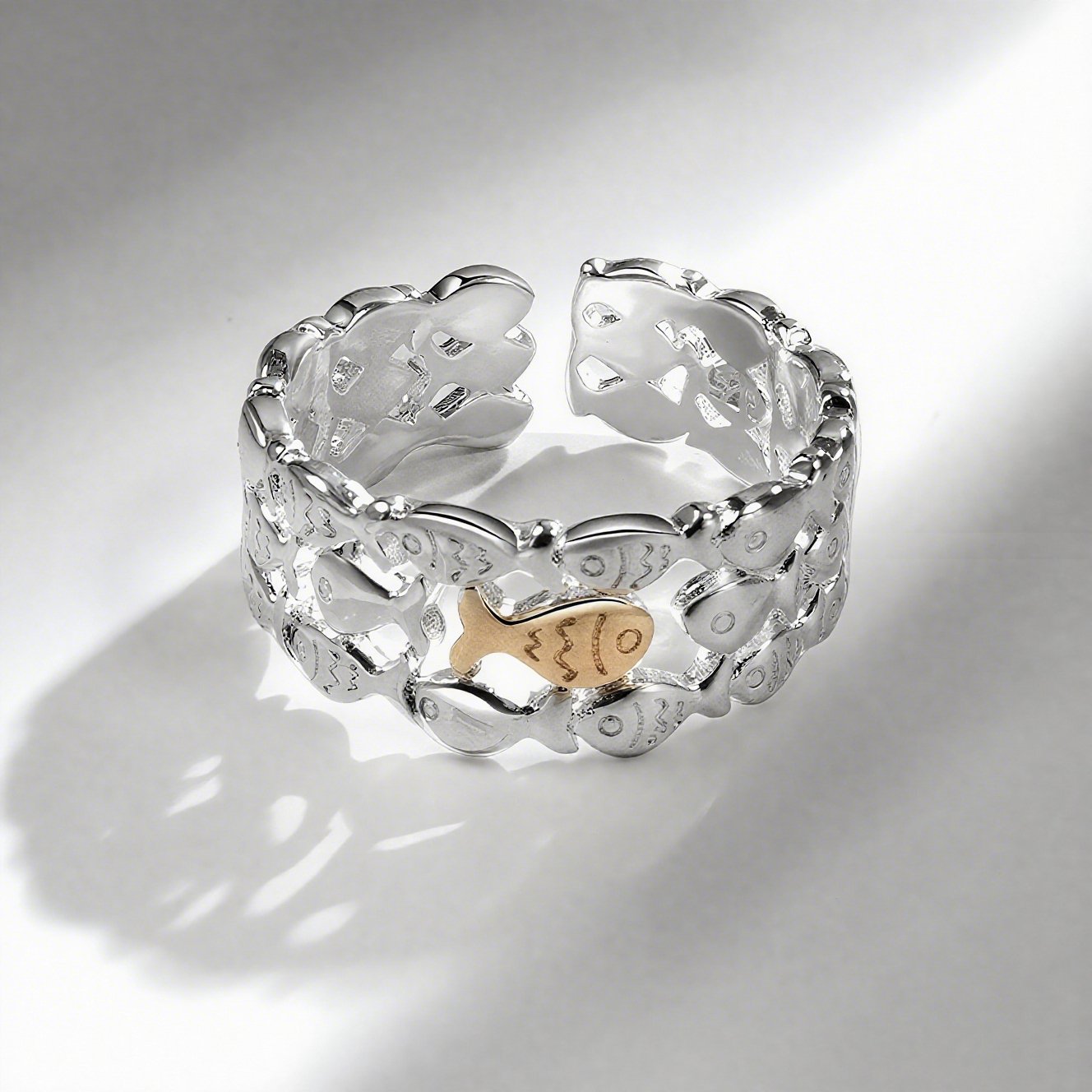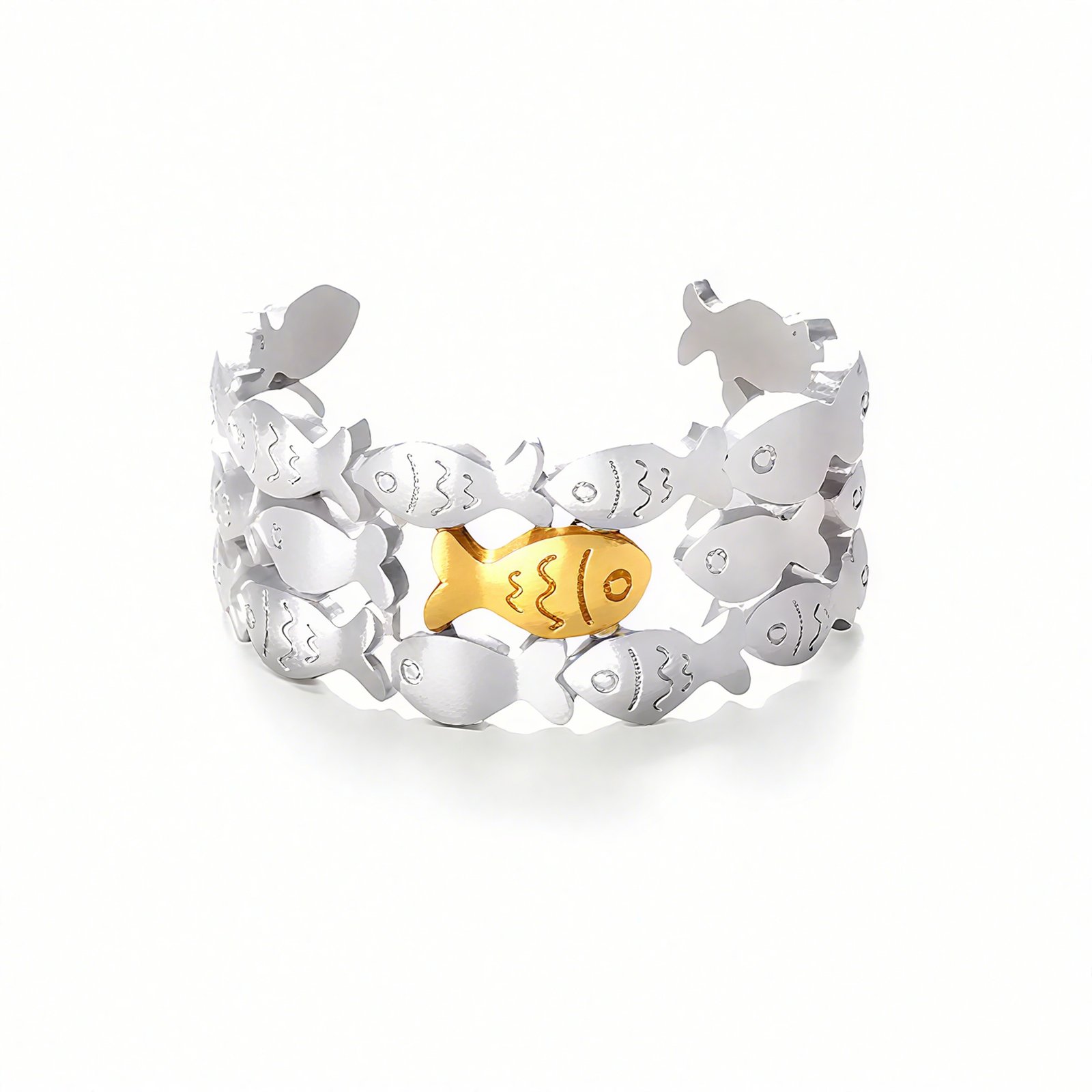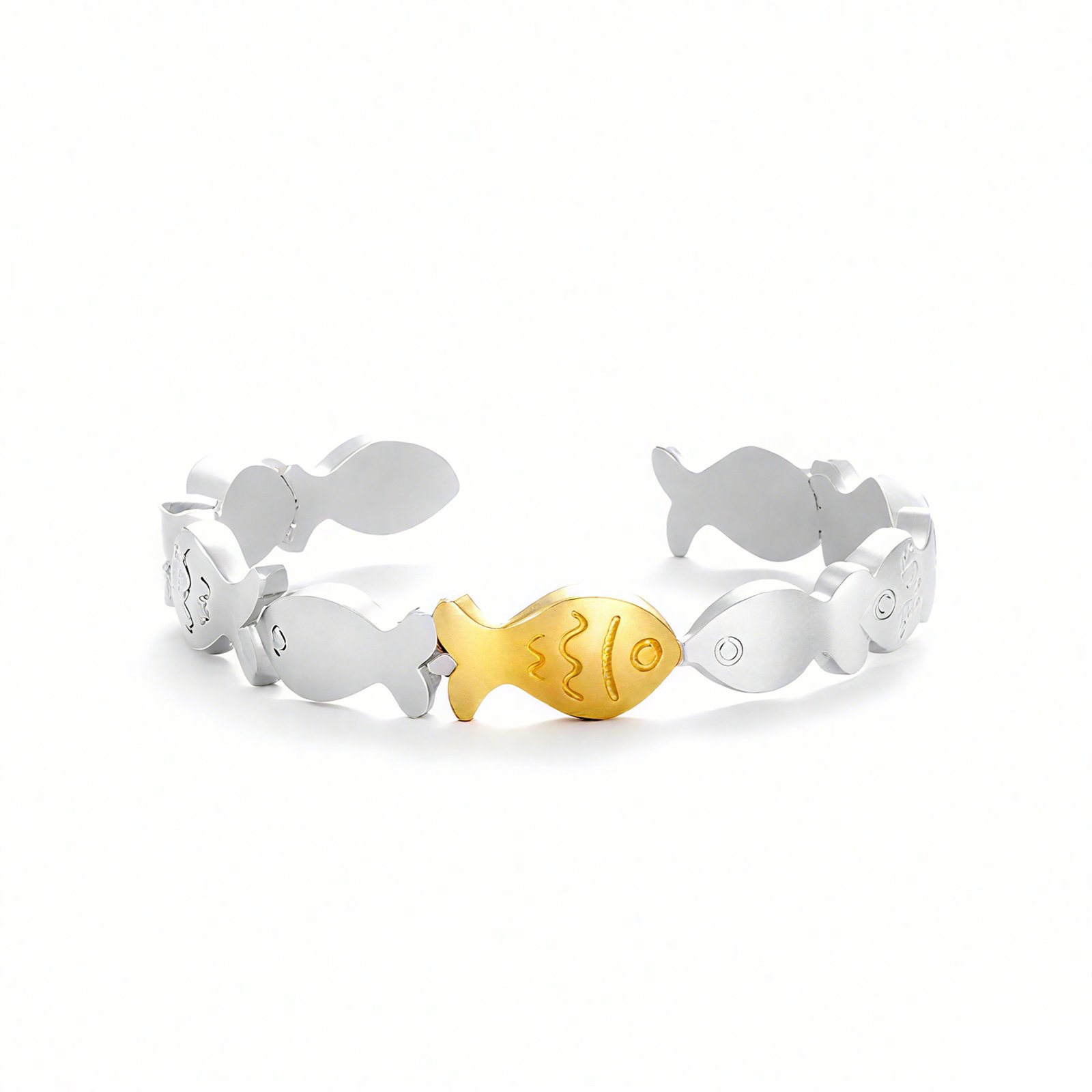 Brilliant Cubic Zirconia – Sparkling CZ stones are carefully set along the fish motif, adding elegance and subtle glamour to both casual and dressy looks.